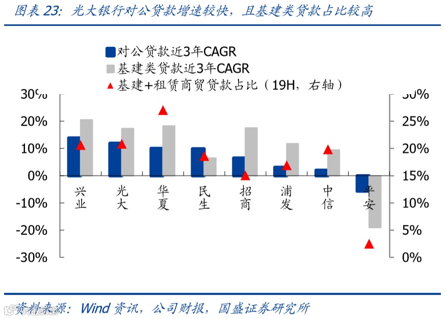 1)光大银行基建类贷款占比较高,且对公综合实力较强。