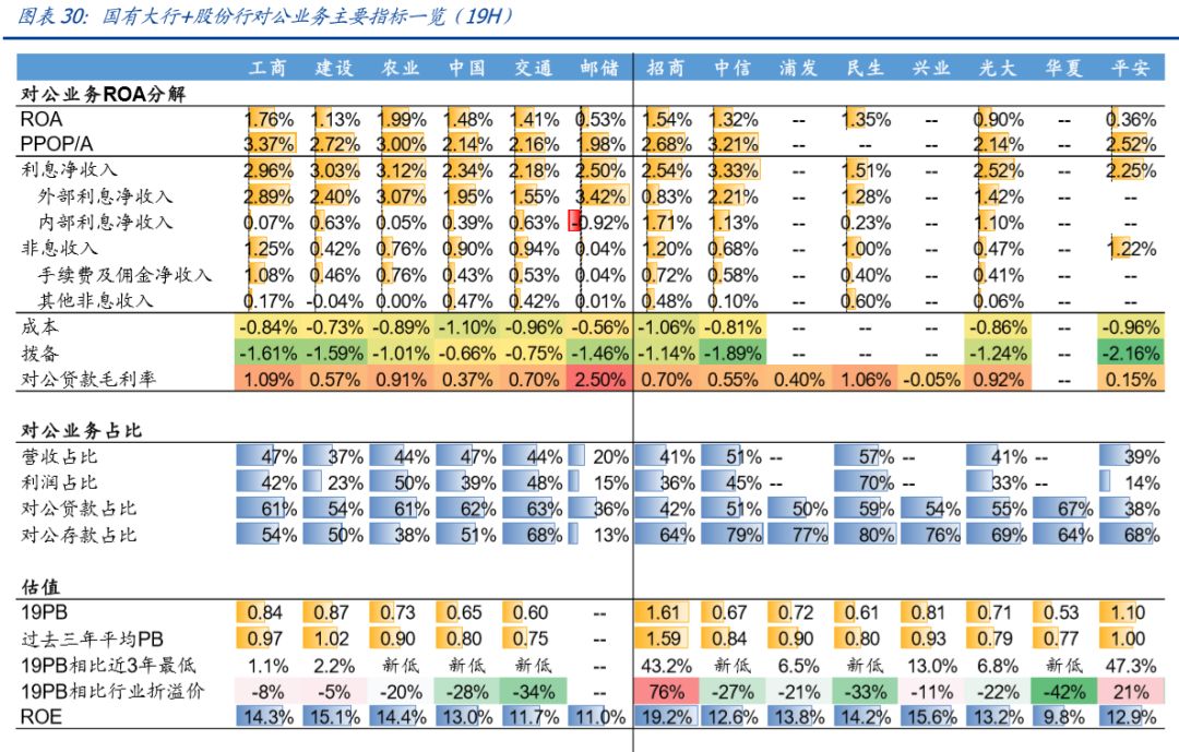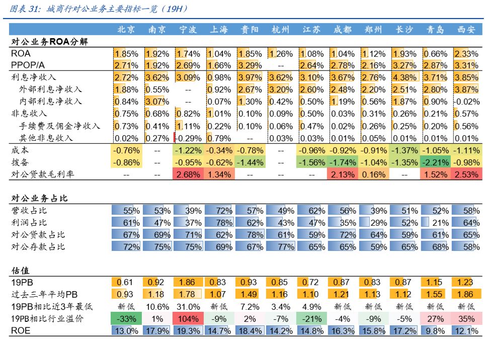 在本篇报告中,我们试图从资产摆布、收入利润占比等维度进行分析,找出“对公标签行”,且结合其资源禀赋、公司治理综合能力、对公业务盈利能力、资产质量等因素,筛选出相对稳健的标的,期待其在2020年有估值修复的机会。