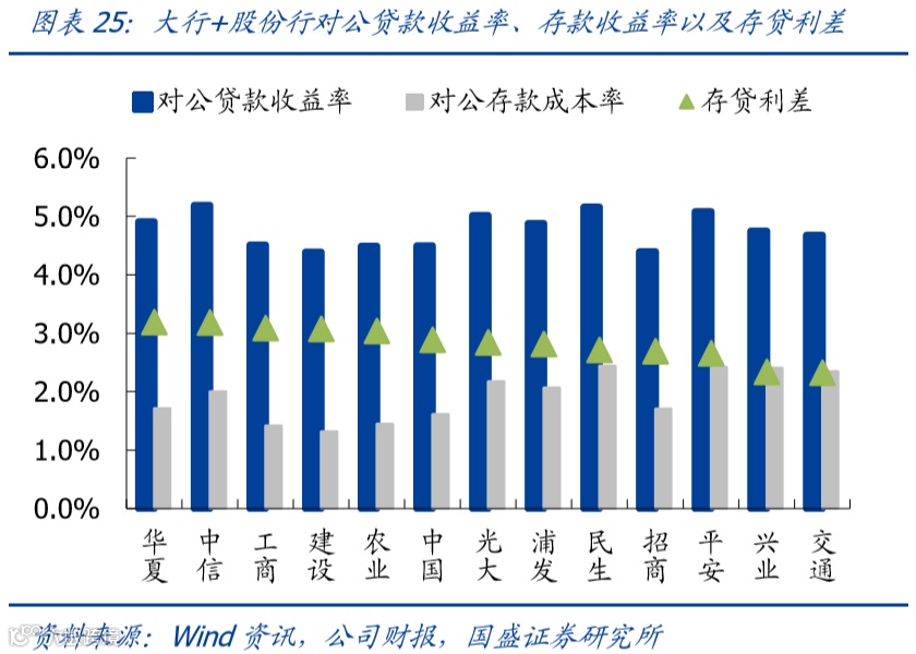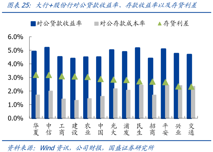 国有大行对公客户以中大型国企央企为主,整体的资产摆布风格稳健。这类客户的贷款收益率不高(4.5%左右),但优势在于: