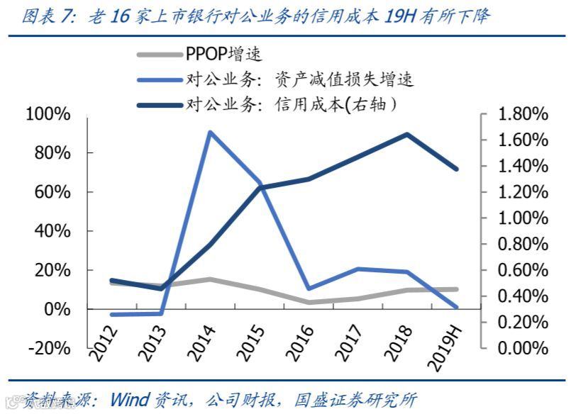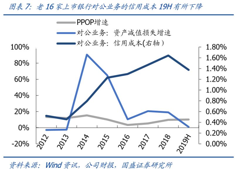 C. 拨备计提角度:19H在拨备前利润增速稳步提高的情况下,对公业务计提的资产减值损失增速下降至仅1.03%,年化的信用成本也首次回落至1.37%。