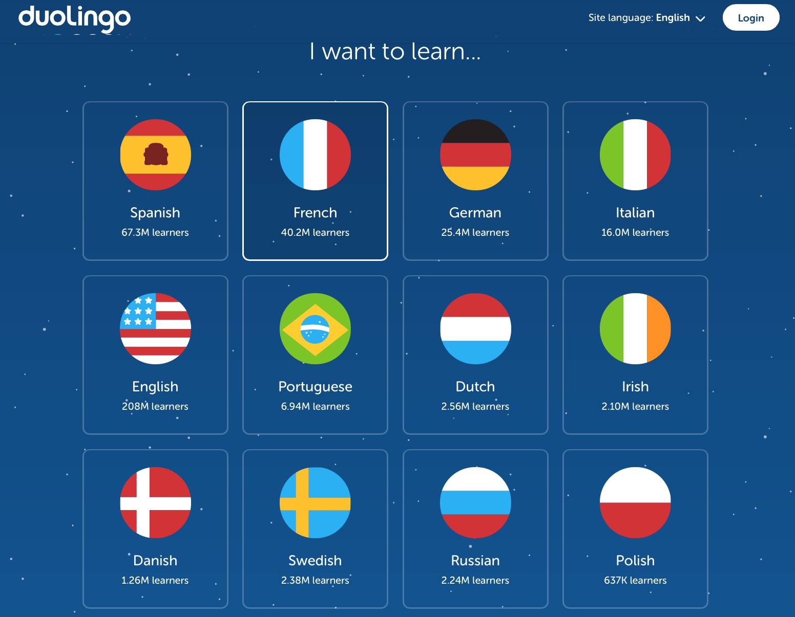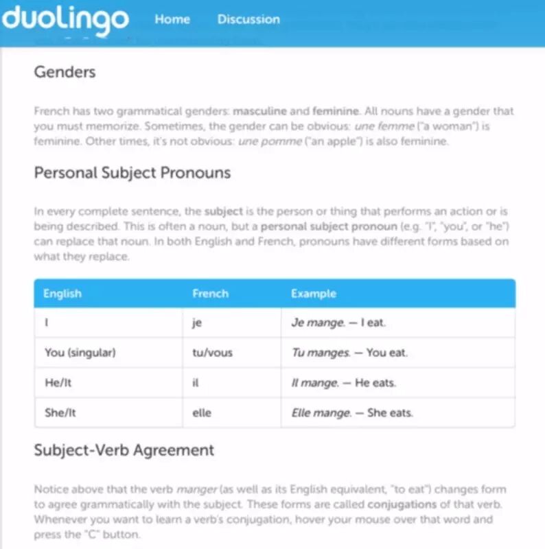 喜欢fancy界面的小伙伴,不要错过Duolingo。网站同样是“游戏化教学”的典范。课程会辅以教学大纲,这点在众多侧重单词教学的同行网站中,算