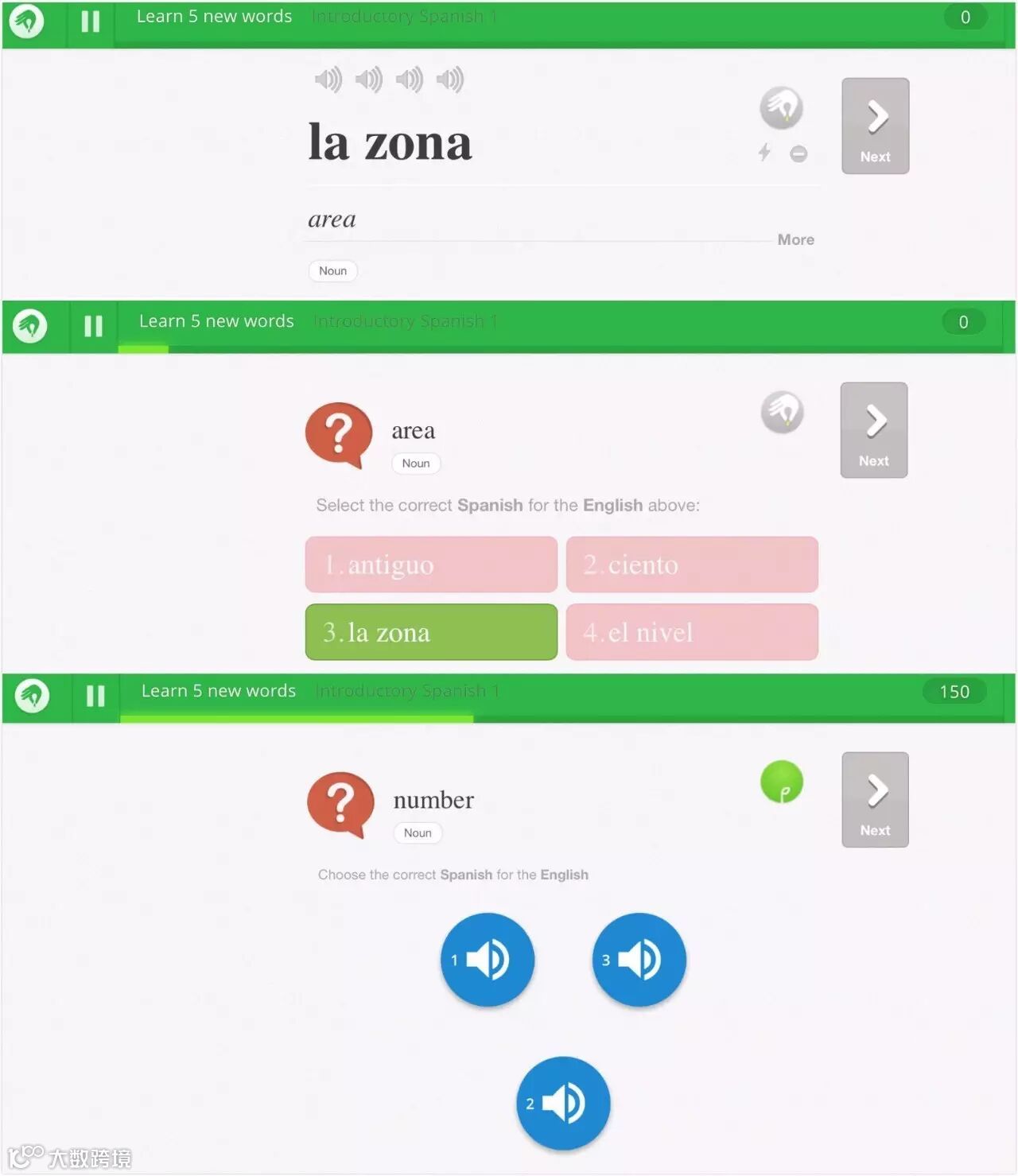 Memrise,站如其名,主攻用户对单词的记忆加深,就是变着花地提问你单词的意思,帮助加深印象。比如,网站不仅对文字进行训练,还给出多个声音选项,让用户找和文字匹配的正确读音。