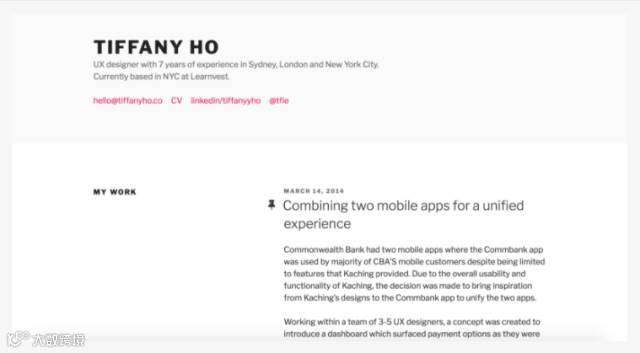 如果你不是视觉设计师,还是尽量不要沉迷于视觉化的内容展现。作品集不是要展示你惊人的视觉设计技巧,而是要呈现你在UX和产品设计上的能力,你的角色是UX设计师,你是为了解决问题、提出方案而存在的。