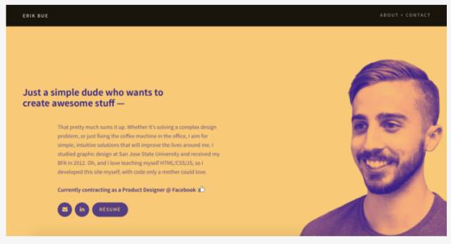 Eric Bue 的关于我页面就做的干净整洁,又足够有个性。