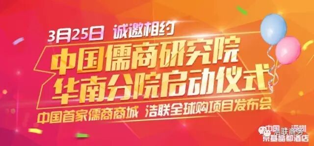 中国儒商研究院华南分院启动仪式暨浩联全球购项目发布会即将开幕