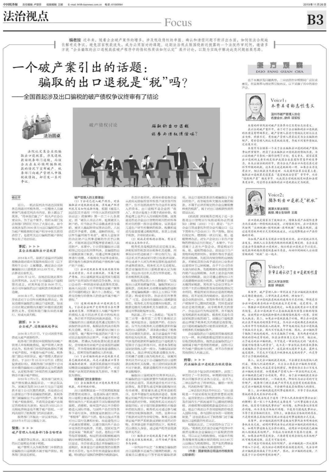 来源:中国破产法论坛(原文出处:《中国税务报》2019年11月26日B3版) 责编:胡姝娴