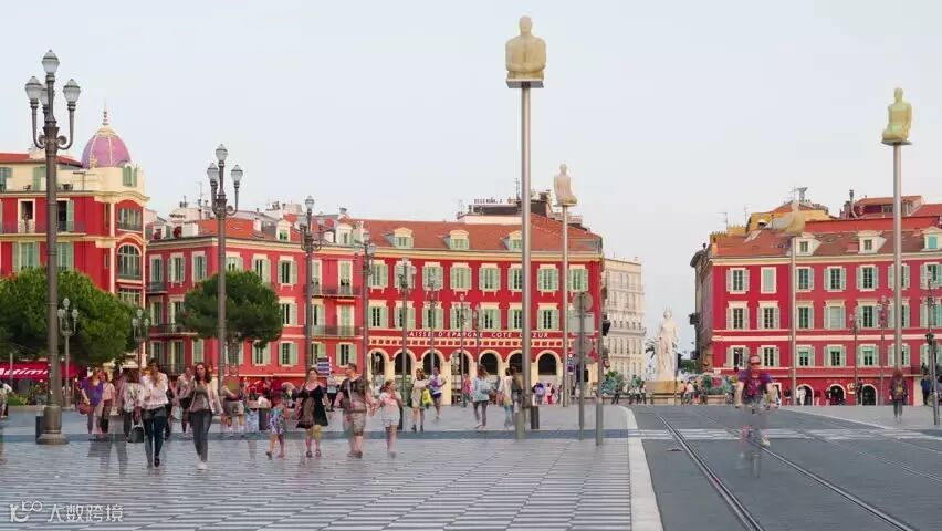 E.马塞纳广场——是尼斯最著名最宏伟的广场,连接尼斯老城与新城。它的附近汇聚了尼斯的精粹,南面是尼斯老城,北面是梅德桑大街,周围是富丽堂皇的红色建筑。广场上的大型喷泉是吸引游客的热门聚集地,喷泉上的青铜装饰象征太阳系的各大行星。晚上这里灯光璀璨,经常有街头表演可以欣赏。在周围的咖啡店坐上一会儿,晒晒太阳,看看过路的行人,惬意的人生大概就是如此吧。