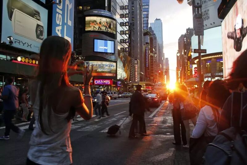 那么不要疑惑,他们在拍摄著名的曼哈顿悬日(Manhattanhenge)!