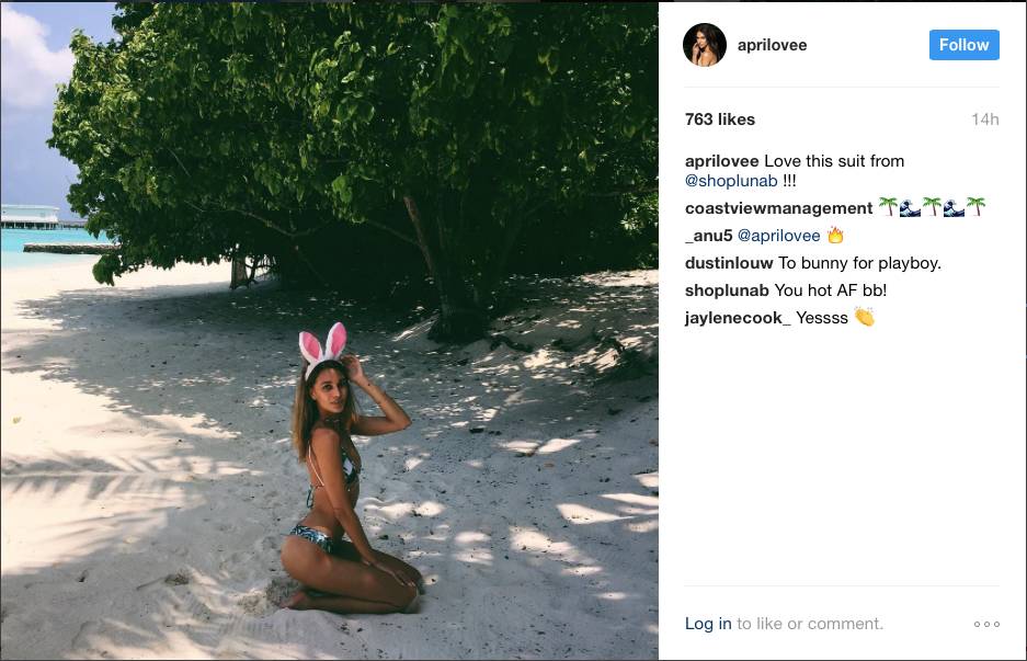歌手Robin Thick的女票April Love Geary。在Insta上贴了一组,被外媒称为“envy-inducing”的沙滩兔兔照。