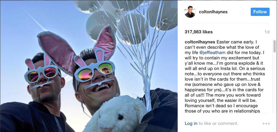 Colton Haynes和他的同性恋人Jeff Leatham特别接地气地,头戴真家伙就跑出来秀恩爱了,还配了一长篇文字呼吁群众大胆去爱❤️