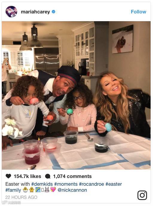 复活节是个和家人团聚的好机会。表情包一姐Mariah Carey虽然已经和前夫Nick Cannon离婚,但为了陪孩子一起过节,这对父母在复活节重聚,画面也是格外温馨。👨👩👧👦