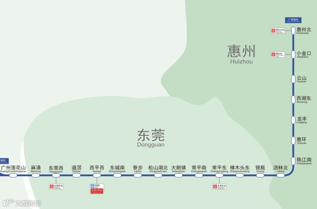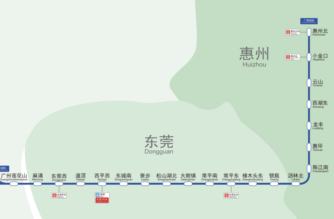 经广惠城际运行的快车及特快列车则不停靠广州莲花山。因此,计划在广州莲花山站换乘的旅客需多加留意,以免错过换乘站。