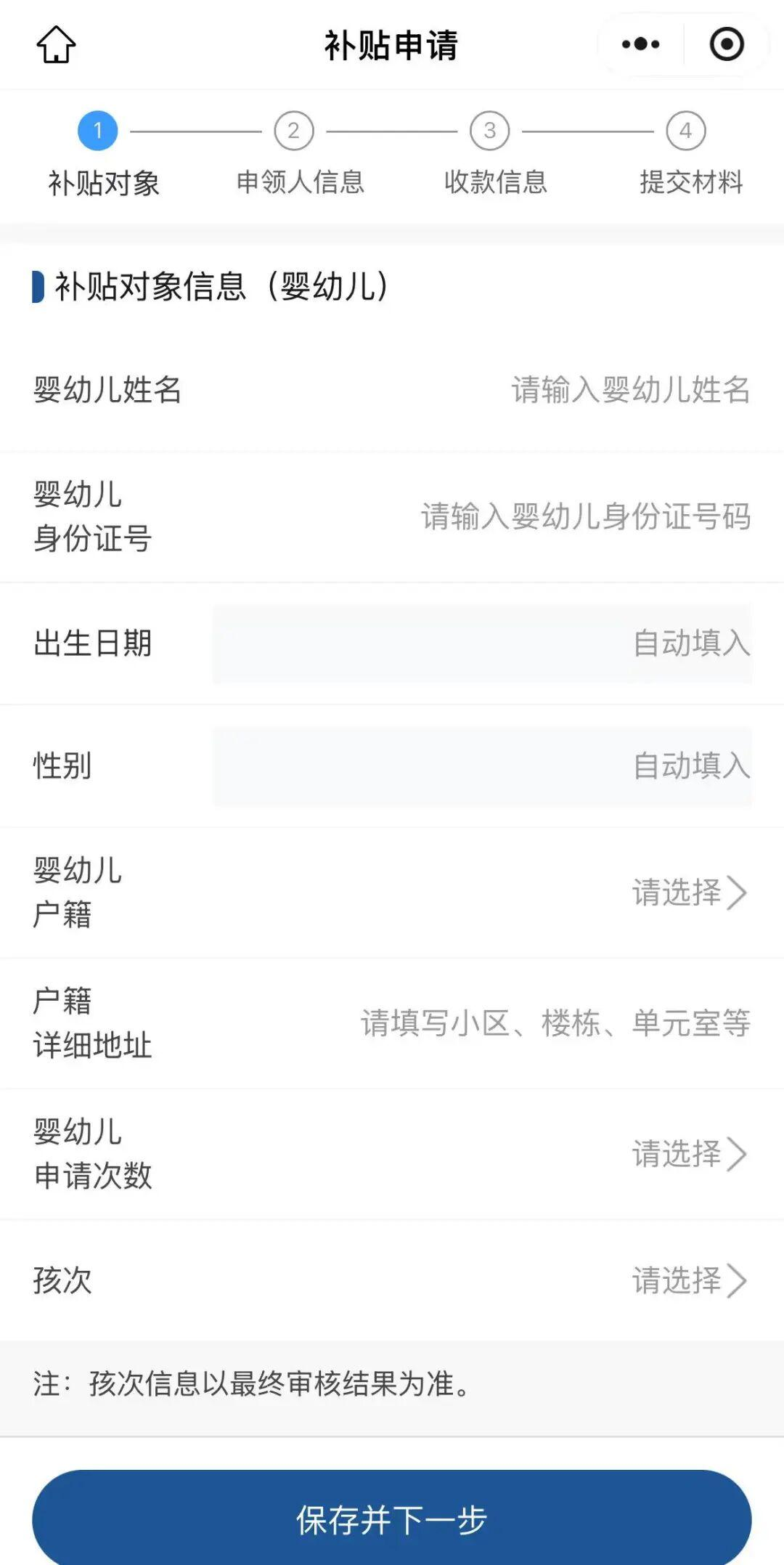 以微信为例,在微信小程序搜索“育儿补贴”,在小程序首页输入婴幼儿户籍所在省份,点击“立即前往”,即可跳转至官方政务服务平台,按页面提示填写相关资料并提交申请领取育儿补贴。