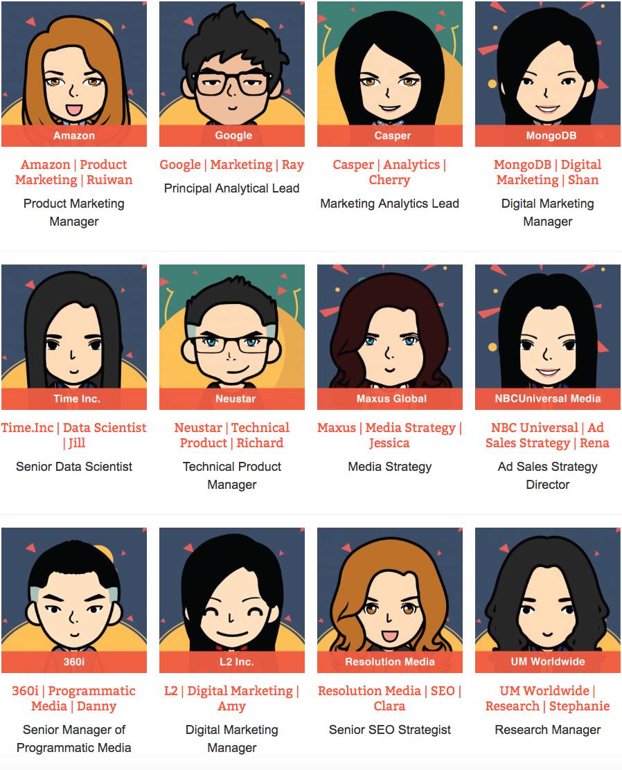 在学习了关于Marketing行业的全解析之后,学员可以从Marketing求职,Digital Marketing和Marketing Analytics这3个track中,选择一个自己最感兴趣的track进行深度学习。(点击最下方阅读原文,可以进入集训营页面,获得完整课表!)