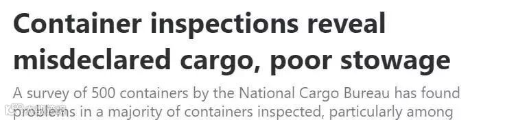 近日美国货运局对远洋集装箱进行抽查,抽查的500个集装箱中存在大量误报和不合格的危险品货物!