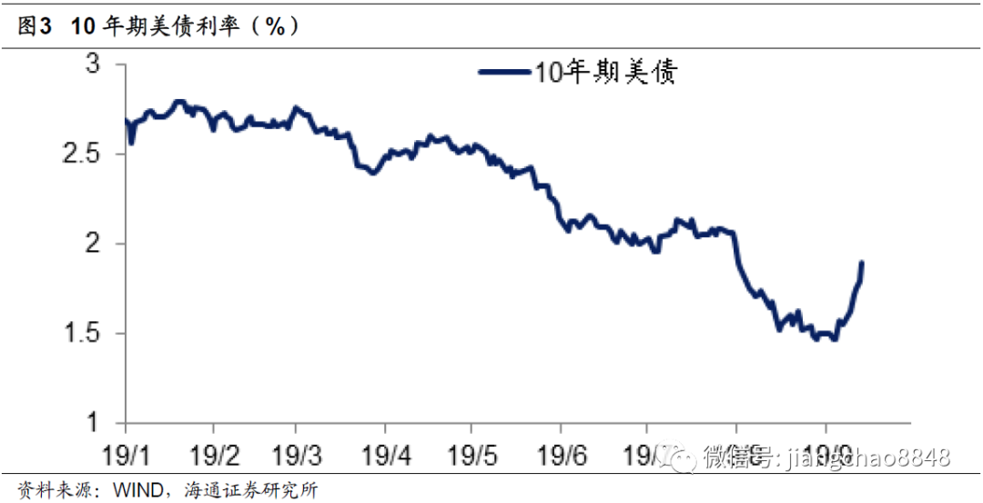 1)美国8月零售数据好于预期。上周五,美国商务部公布8月零售销售环比增长0.4%高于预期的0.2%,前值0.7%上修至0.8%。此外,9月密歇根大学消费者信心指数初值92,亦高于预期的90.8。数据公布后,10年期美债收益率明显回升到1.9%。