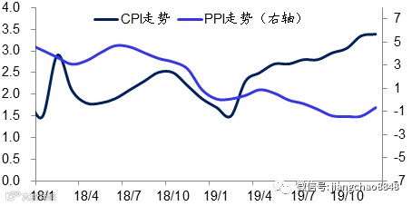 消费的回升则得益于大规模减税降费,我们估算2万亿减税降费的一半左右将归属于居民部门,增加1万亿的居民收入和7000亿的居民消费,增加居民消费增速2%左右。考虑到减税降费的作用仍将继续体现,年内消费增速稳中有升,因而也将支撑CPI继续上行。