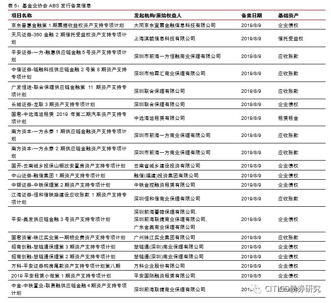 根据基金业协会ABS发行备案信息,上两周共有27支资产证券化产品备案,其基础资产包括基础设施收费、信托受益权、应收账款、企业债权和租赁租金。