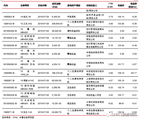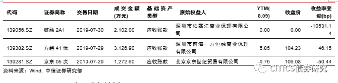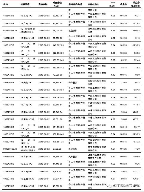 上两周交易所市场共114支资产支持证券产品成交,成交规模共计76.75亿元。其中,上交所共74支证券成交,总规模为53.48亿元;深交所共40支证券成交,总规模为23.26亿元。多数个券收益率下行。