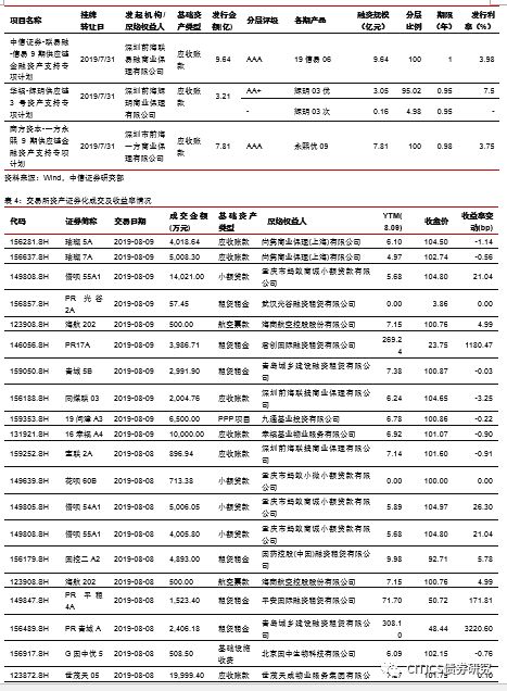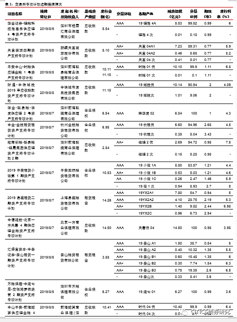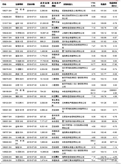市场回顾:交易所资产证券化。根据上交所、深交所公告,上两周共有26支交易所资产证券化产品挂牌,共募集资金232.40亿元,其中18支在上交所,8支在深交所。上周挂牌转让产品中,基础资产包括应收账款、基础设施收费、信托受益权、企业债权和租赁租金等。上两周交易所市场共114支资产支持证券产品成交,成交规模共计76.75亿元。其中,上交所共74支证券成交,总规模为53.48亿元;深交所共40支证券成交,总规模为23.26亿元。多数个券收益率下行。