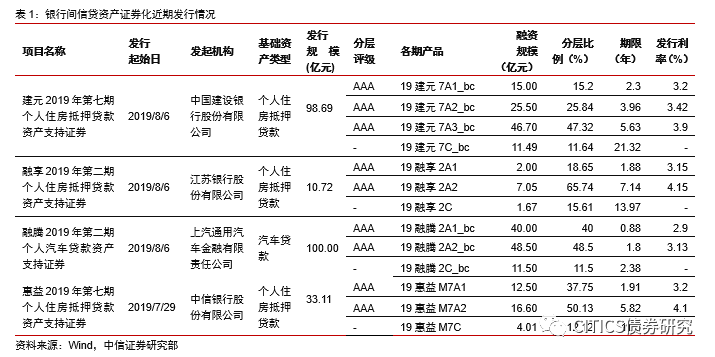 上两周银行间市场共发行4单信贷资产支持证券产品,共募集资金242.52亿元,基础资产分别为个人住房抵押贷款和汽车贷款。