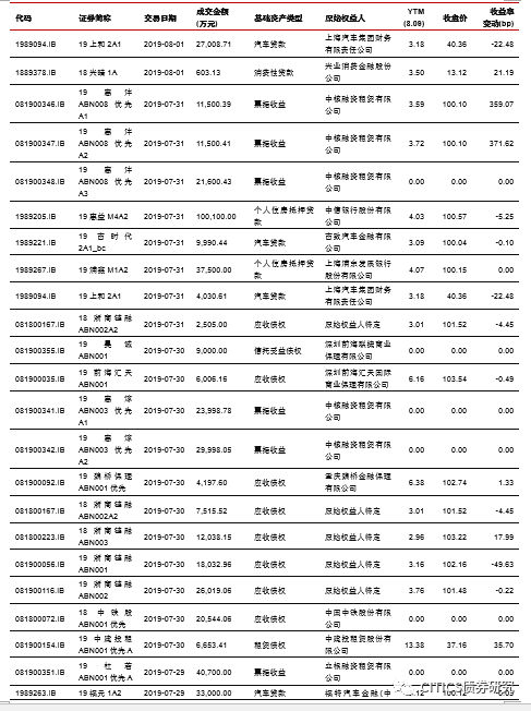本周发行计划。本周银行间市场将有1只信贷资产证券化产品发行,是长安汽车金融有限公司发行的长融2019年第一期个人汽车抵押贷款资产支持证券(30.00亿元)。