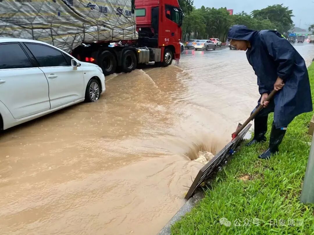 5日,塘厦镇应急、水务、公用等相关部门,在镇内易积水点开展巡查、值守,安置相关警示标识,及时疏通管道。运用石马河沿岸水位视频监测点和河道大喇叭广播点,通知沿河社区和群众和企业做好防御和转移工作。