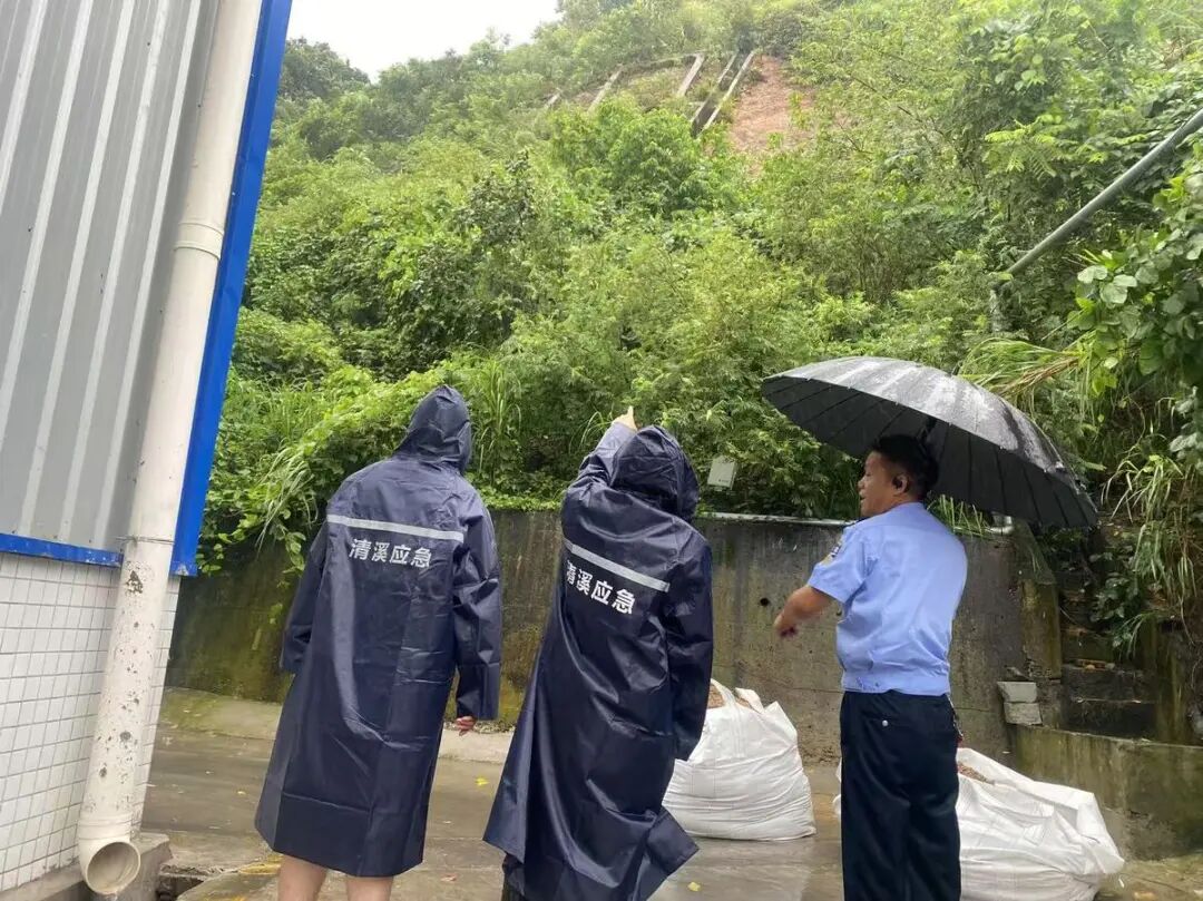 应急人员闻“汛”而动,迅速投身一线。依托“雪亮工程”视频监控系统,清溪镇三防部门快速定位积水路段,并组织“三人小组”现场疏通管道、加速排水,并加强野钓游玩群众劝喻,防范意外事故发生。