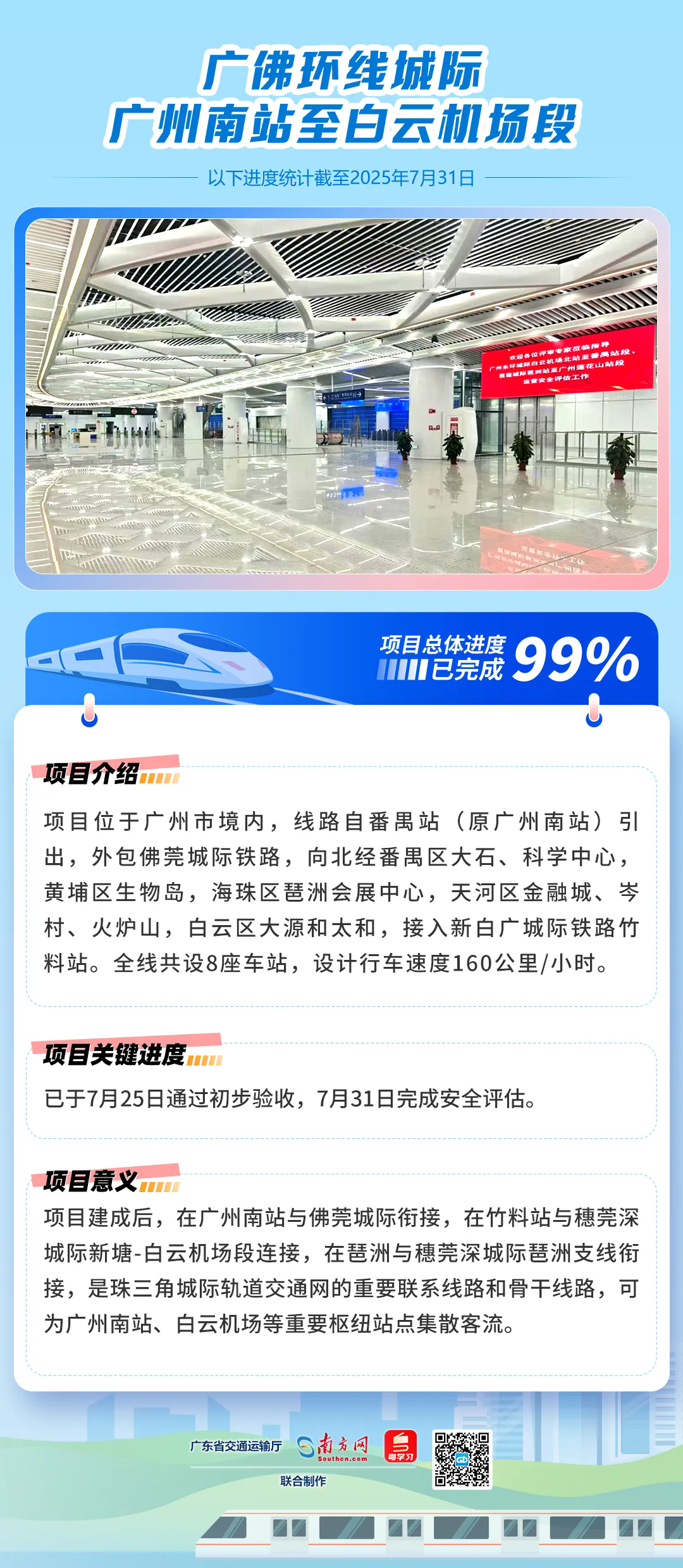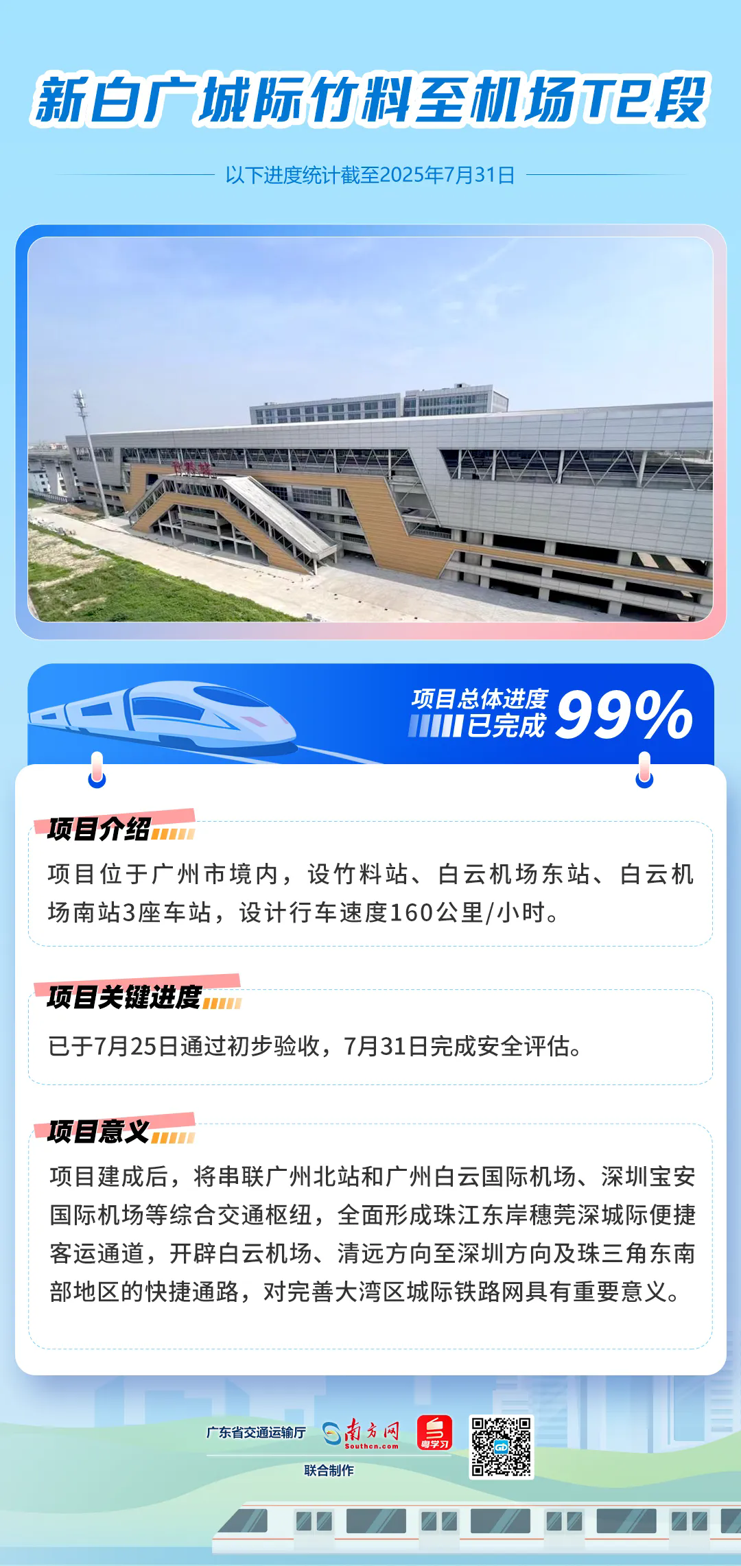 近日,珠三角城际轨道交通广佛环线广州南站至白云机场段(以下简称“广佛东环”)、穗莞深城际铁路琶洲支线(以下简称“琶洲支线”)、新白广城际铁路竹料站至机场T2站段(以下简称“新白广竹料至T2段”)顺利通过初步验收,标志着三条城际线路朝着年内开通运营的目标迈出重要的一步。