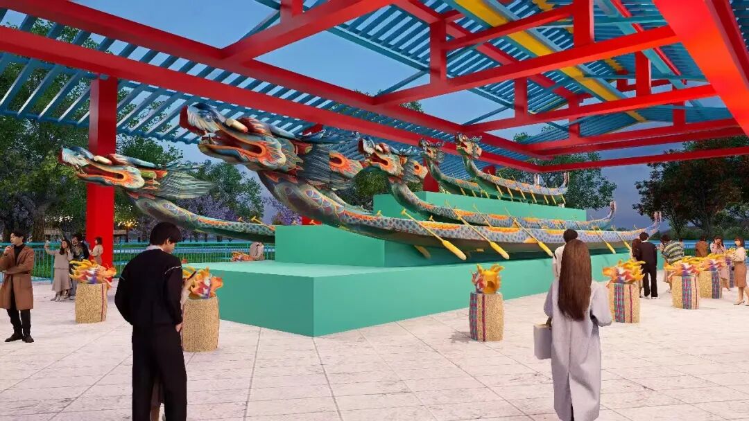 作为文旅+商业的创新探索,文创集市融合水乡文化、龙舟等非遗文化、美食文化等元素,将各种商业场景串联,打造集“美食、购物、娱乐、社交、文化”于一体的沉浸式空间。