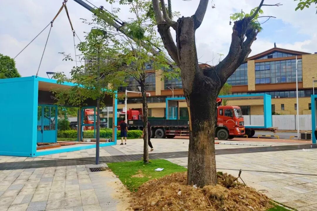 觉华龙堂文创集市位于中堂觉华公园旁边,依托公园绿地、滨水步道等优美的自然环境,将地域特色文化融入现代建筑设计,百余组集装箱被改造成充满创意和活力的公共空间,让工业风的潮流感与公园的自然气息碰撞,堪称一座“能逛、能玩、能打卡”的商业公园。