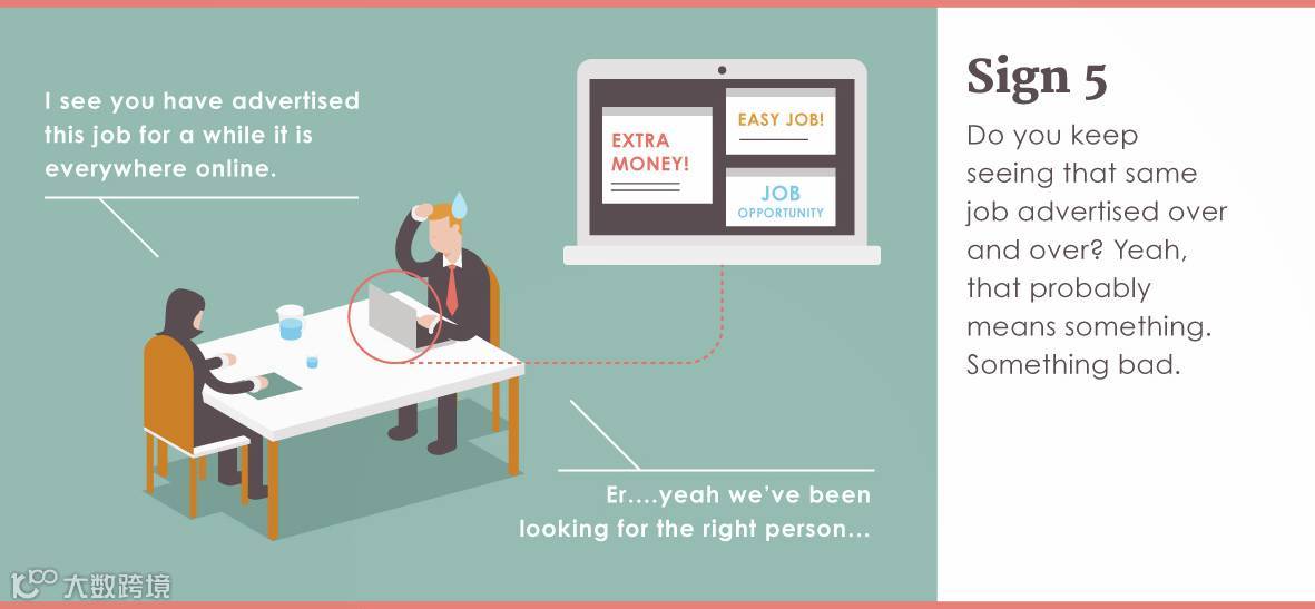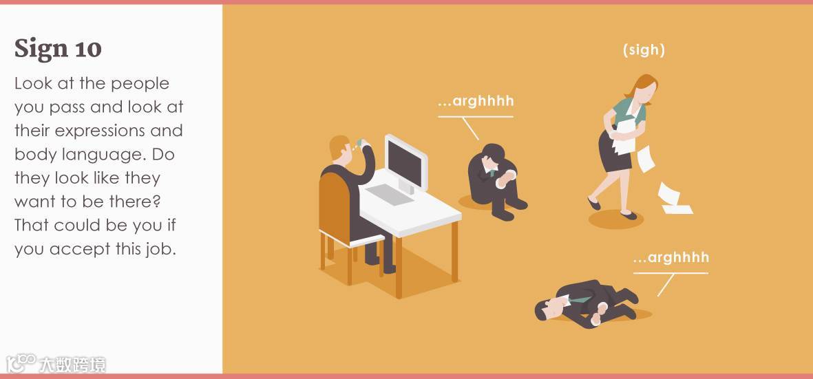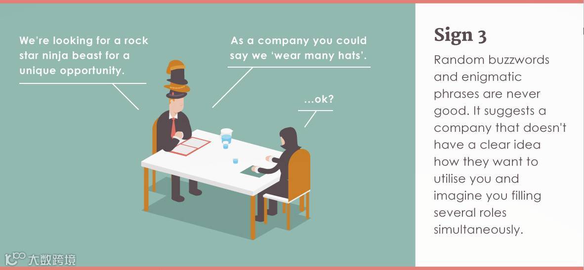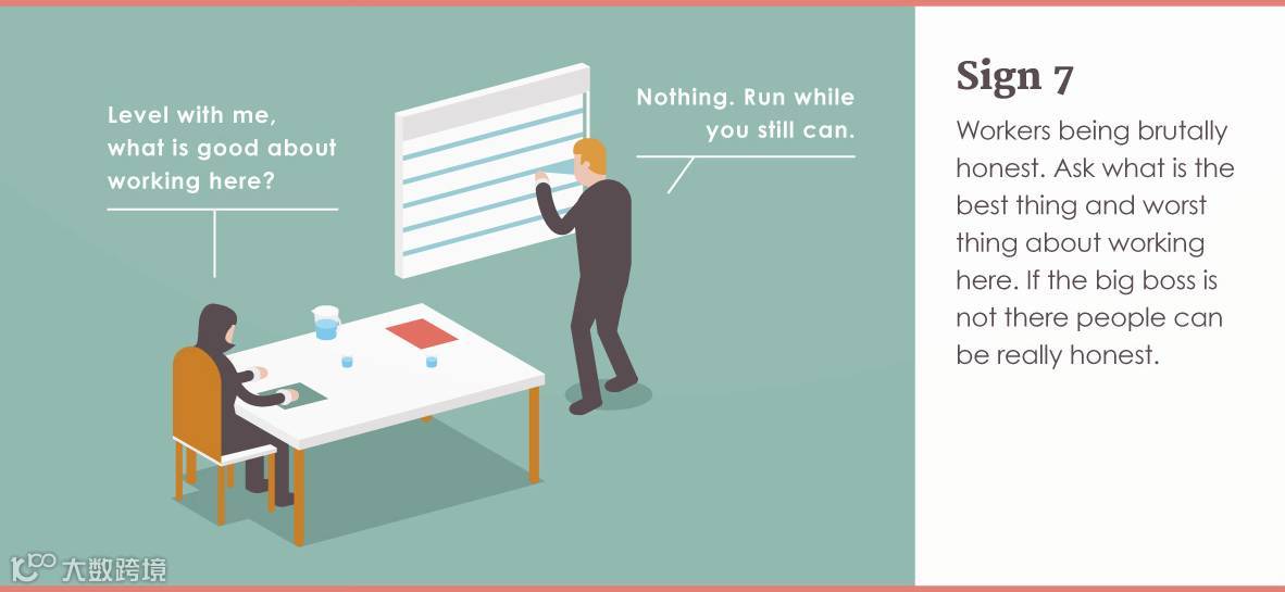 比如,面试官对职位详情描述得过于模糊,雇员互相吐槽无意中被你听到;这些看似无所谓的小细节,其实极有可能反映了公司很严重的潜在问题。