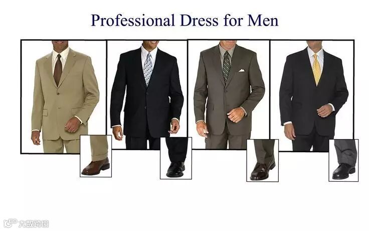 男生需穿皮鞋。鞋子、西装、腰带的颜色应该一致,黑色为最百搭。袜子和皮鞋颜色,或和西裤的颜色相同。