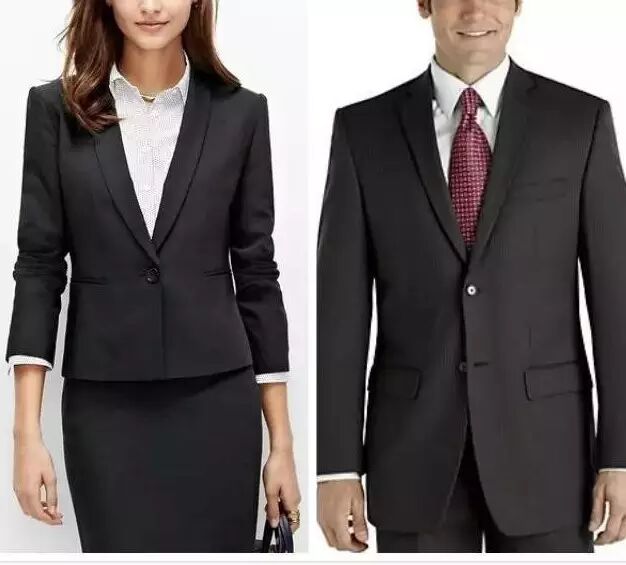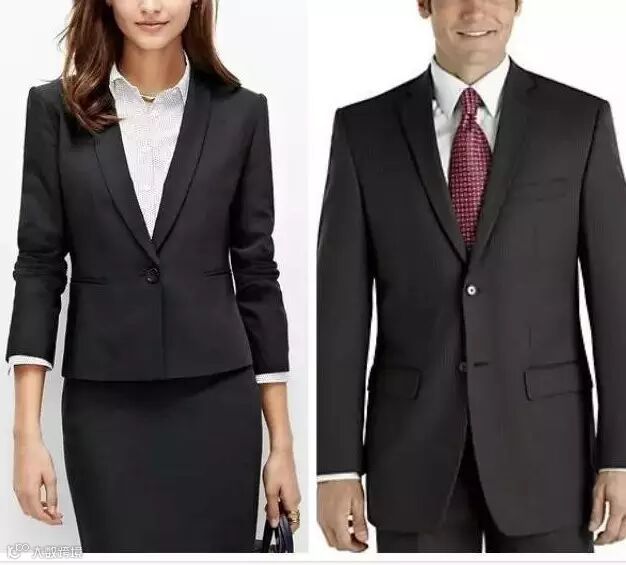 市场上的男女西装分许多款式,但去招聘会,一定是面料挺括悬垂、质量感强的正装西装。颜色建议选择保守色,如永远不会错的黑色,藏蓝色,或者灰色。