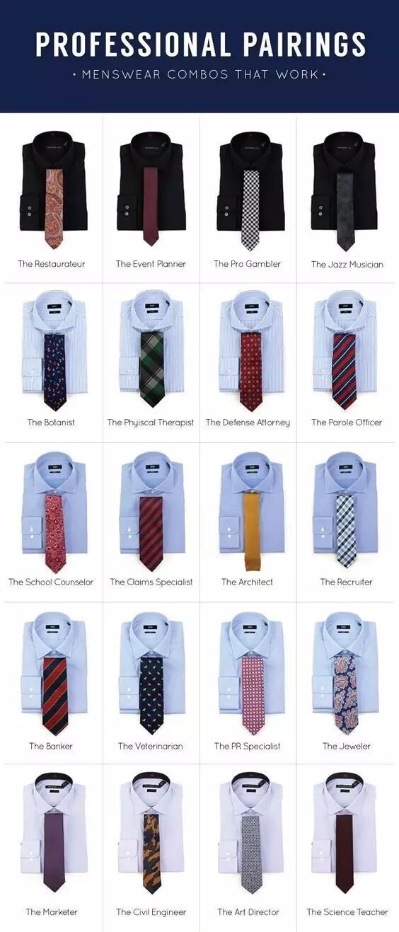 男生的领带/领结需和全身服装搭配,遵循全身上下不超过三种颜色的原则。领带可使用领带夹固定显干净利落。