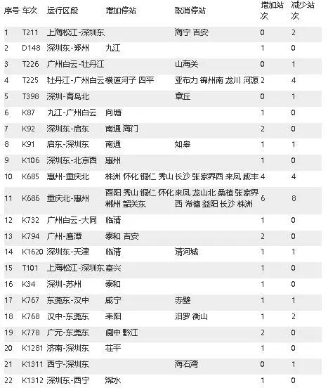 (三)调整部分旅客列车办理客运营业站,具体如下:
