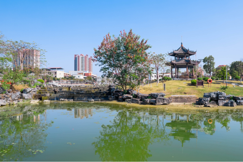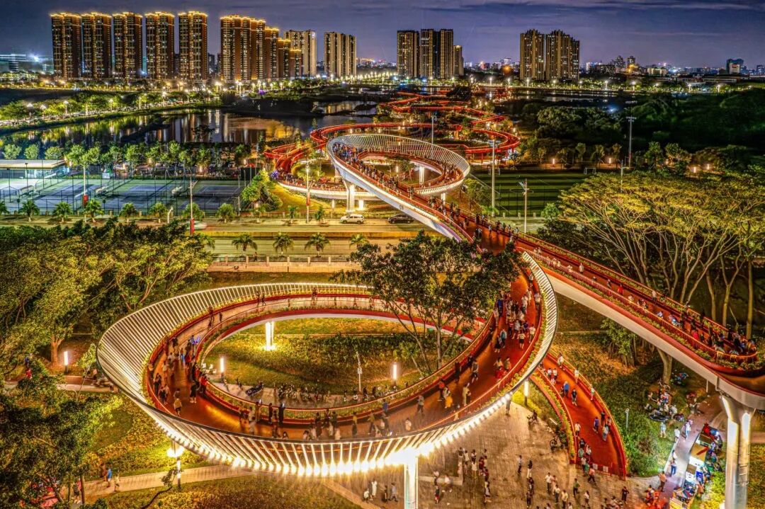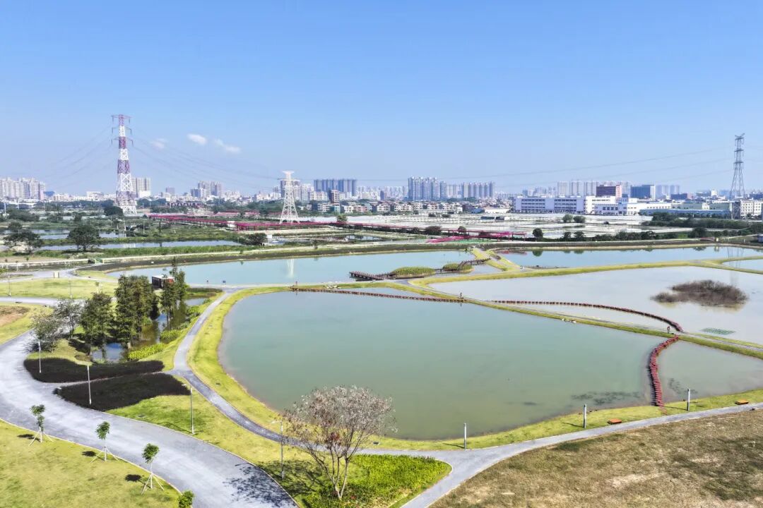 松湖北湿地公园镶嵌于繁华与自然的交汇点,沿空中栈道欣赏大片水系、绿洲相交映的石排美景。在2025东莞城市空间艺术邀请展里邂逅艺术与自然的诗意碰撞,聆听国潮与赛博的对话。