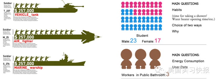 相关调研数据图:将原本用柱状图或饼图表示的数值改为用图形个数来代替,显得格外醒目,一眼就能看出各数值之间的差异程度,并且使画面更加丰富生动。