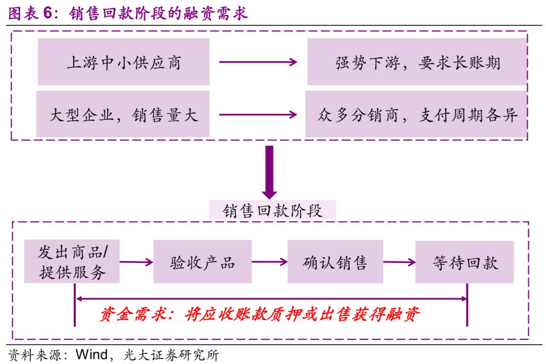 从销售完毕至等待回款这个阶段,形成了应收账款,这个阶段的融资需求都是为了加快销售回款。通常也可以分为两种情况: