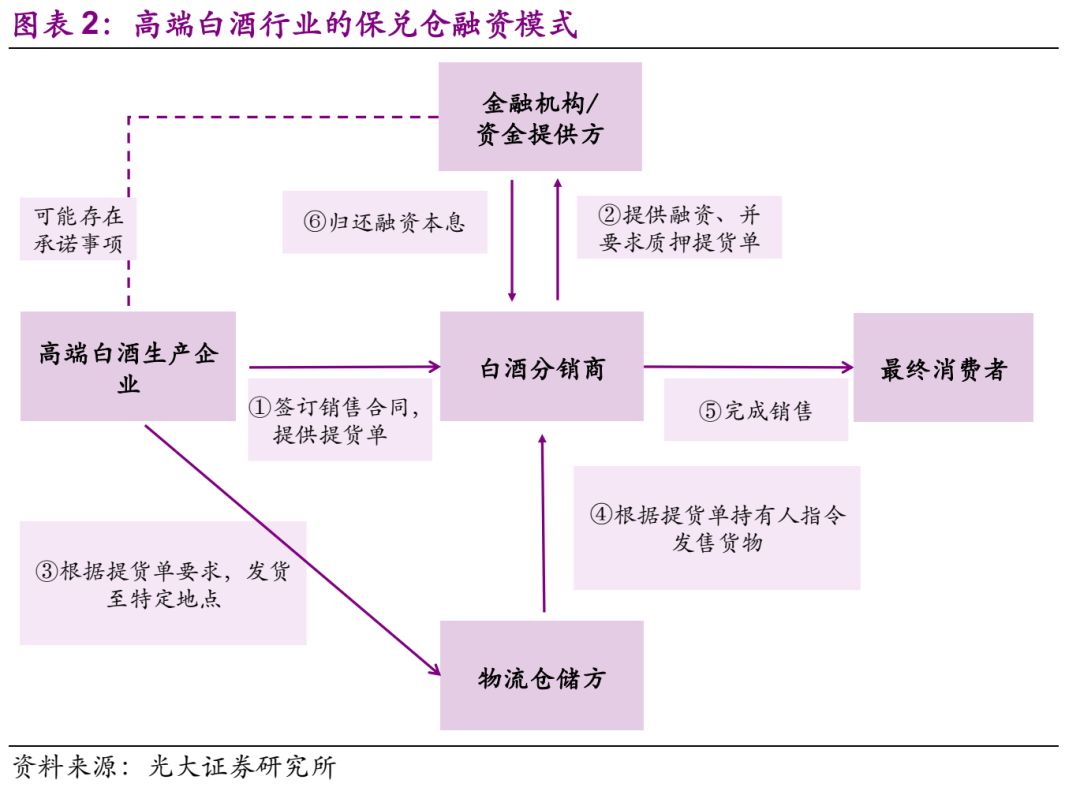 在我国,高端白酒通常供不应求,白酒生产商具有较为强势的谈判地位,通常要求下游经销商预付较大比例的货款甚至是全部货款。而白酒销售通常存在季节性,白酒的预订与销售之间存在3至6个月之间的时间差,预付款的支付影响了下游经销商的资金周转能力以及销售规模。此外,高端白酒具有较强的增值保值,耐储存、易变现等特点。