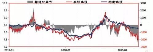 我们的理论依据就是这个进口盈利太多或者亏损太多都是不对的,市场正常的贸易流和套利力量会纠正这种价差,从而使我们获利了结。