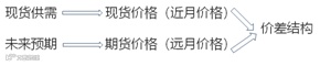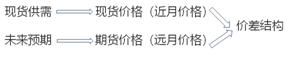 如果市场比较乐观,给出的未来价格越来越高,那么就形成正向市场;反之,市场比较悲观,给出来的未来价格越来越低,就形成反向市场,即是“期货价格-现货价格-市场结构”的过程。