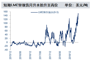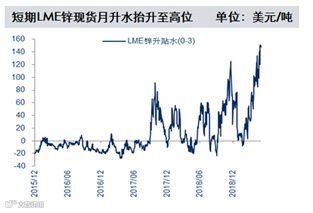 锌从2016年到2017年下半年的上涨中,现货长期保持贴水,市场结构基本上处于正向结构;从2017下半年以来,市场预期锌精矿产出将大幅增加、未来变为供应过剩,所以锌价出现持续的下跌,但由于当前锌锭库存不足、仍处于去库存状态,所以锌市场结构为深度的back结构。