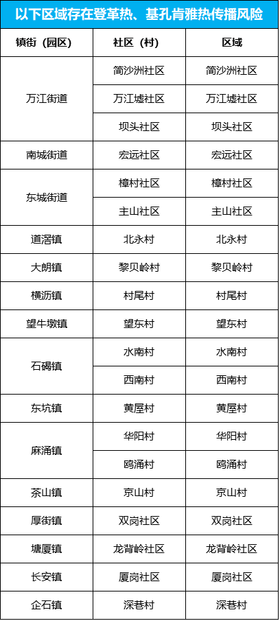 备注:传播风险区域动态更新,市民群众可关注“东莞疾控”微信公众号获取最新情况。