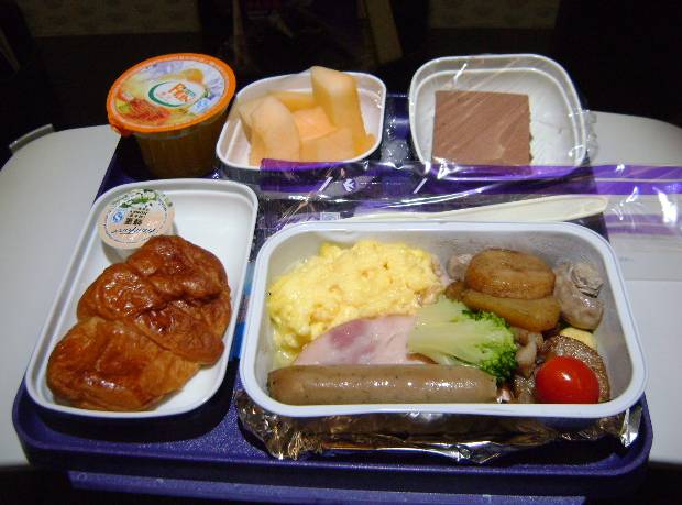 一般点心就是空姐问你要不要面包或者牛角包,要的话就用手拿,不要就没有咯。
