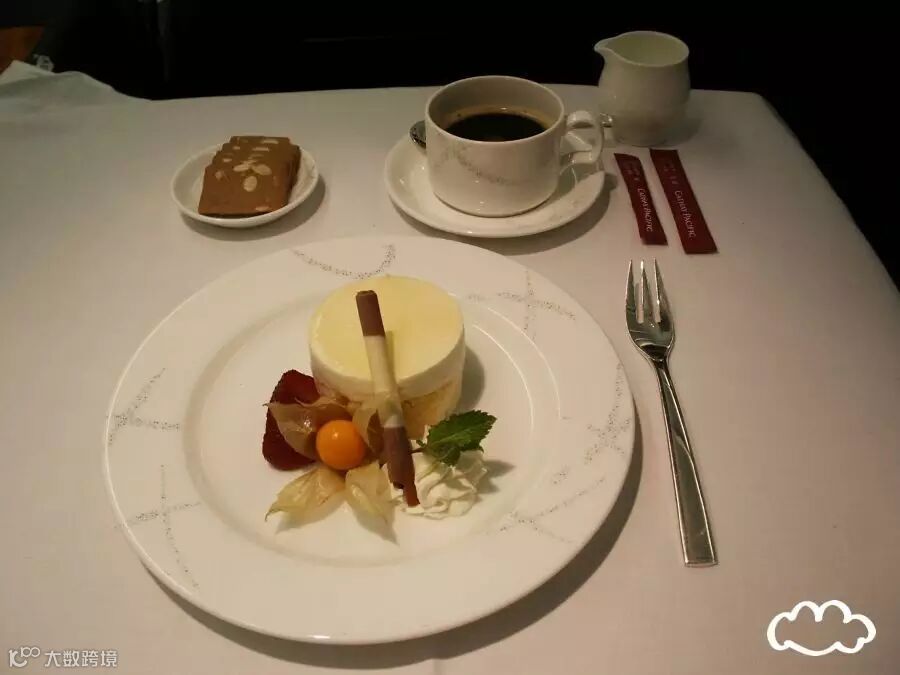 国泰航空秉持着要让每一为旅客吃饱的原则,每次提供的餐食都是满满一餐盘,甜点也是超大块头▼