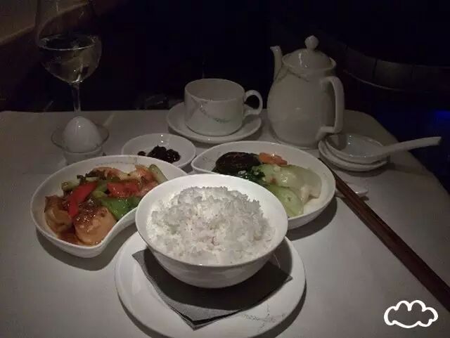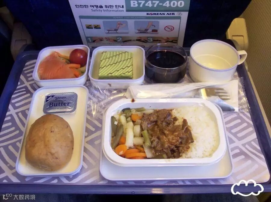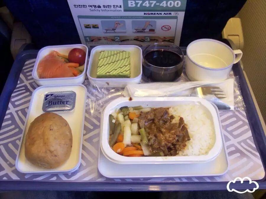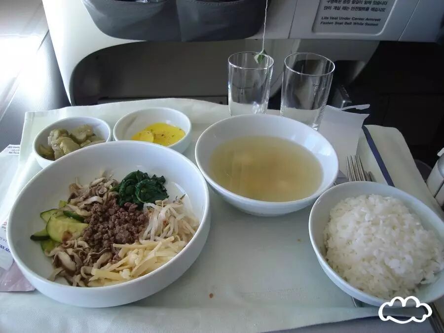 该航空的餐食是吃货评价比较健康的餐食。有比较中式的米饭(从首尔飞到巴黎)▼