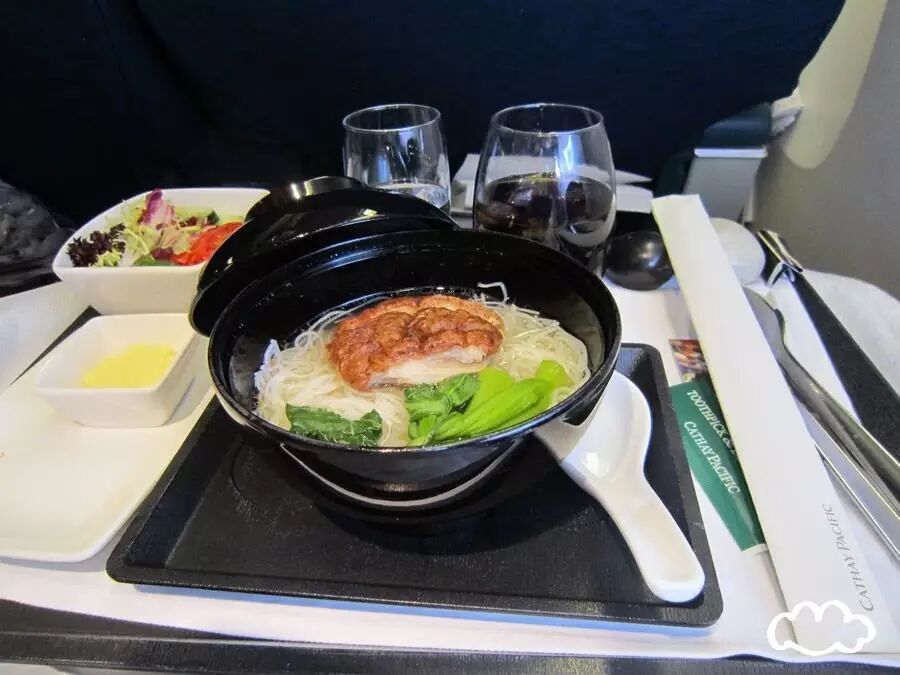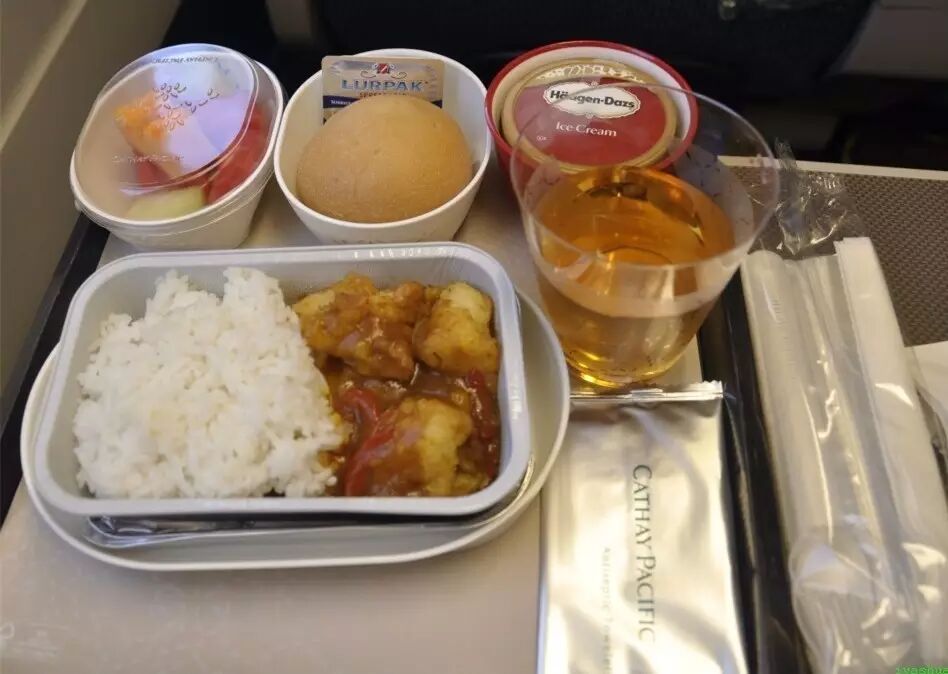 国泰航空的餐食一直是没话说,可以碾压众多航空公司。国泰的飞机餐供应高素质的葡萄酒,乘客如欲购买飞机上的佳酿,可于机上或网上平台“Discover theShop”直接订购,“府上送货服务”便会安排将订购的葡萄酒送到府上。此外,国泰航空为首批在机上安放电饭煲、烤面包机和平底锅的航空公司,机组乘务员能准备现制的米饭、烤面包和煎蛋。而且所有舱位级别提供饭后中国茶。长途航班提供夜宵,所有航班均提供现制咖啡,头等舱可随时点餐,部分航线经济舱提供哈根达斯。