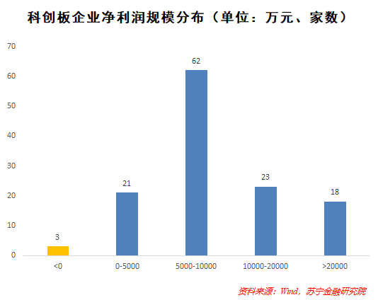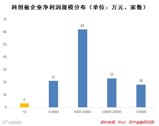 然而,我们仔细观察已受理的科创板企业发现,即使出现了个别亏损企业,从已获得受理的首批企业情况看,科创板更欢迎已有盈利、研发成果已实现商业转化的企业。例如,已受理的科创板企业中,净利润为5000万元-1亿元的科创板企业最多,有62家,净利润为负的企业仅有3家。