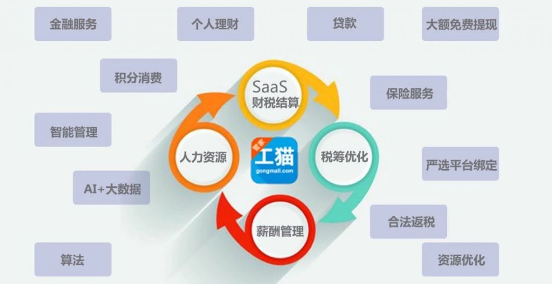 工猫(gongmall)基于互联网思维,S2B2C新模式,致力于为全国企业提供财税结算SaaS解决方案,抓住财税服务需求,为所有企业提供专业,安全的节税服务,同时需求拥有领先的企业财税结算SaaS系统,针对企业员工财务处理,一站式通过系统解决人事财务日常工作,降低企业各方面成本,节省人力,提高效率。解决行业管理痛点。